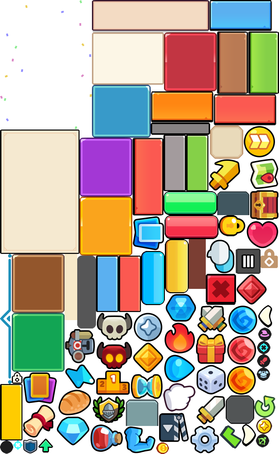- 替换多个精灵图集帧,调整胜利界面背景和元素尺寸 - 重新配置胜利界面按钮布局、位置和间距 - 更新加载界面背景图、进度条位置和尺寸 - 调整角色控制器界面的精灵引用和显示状态 - 修改卡片元素的精灵帧引用和尺寸模式